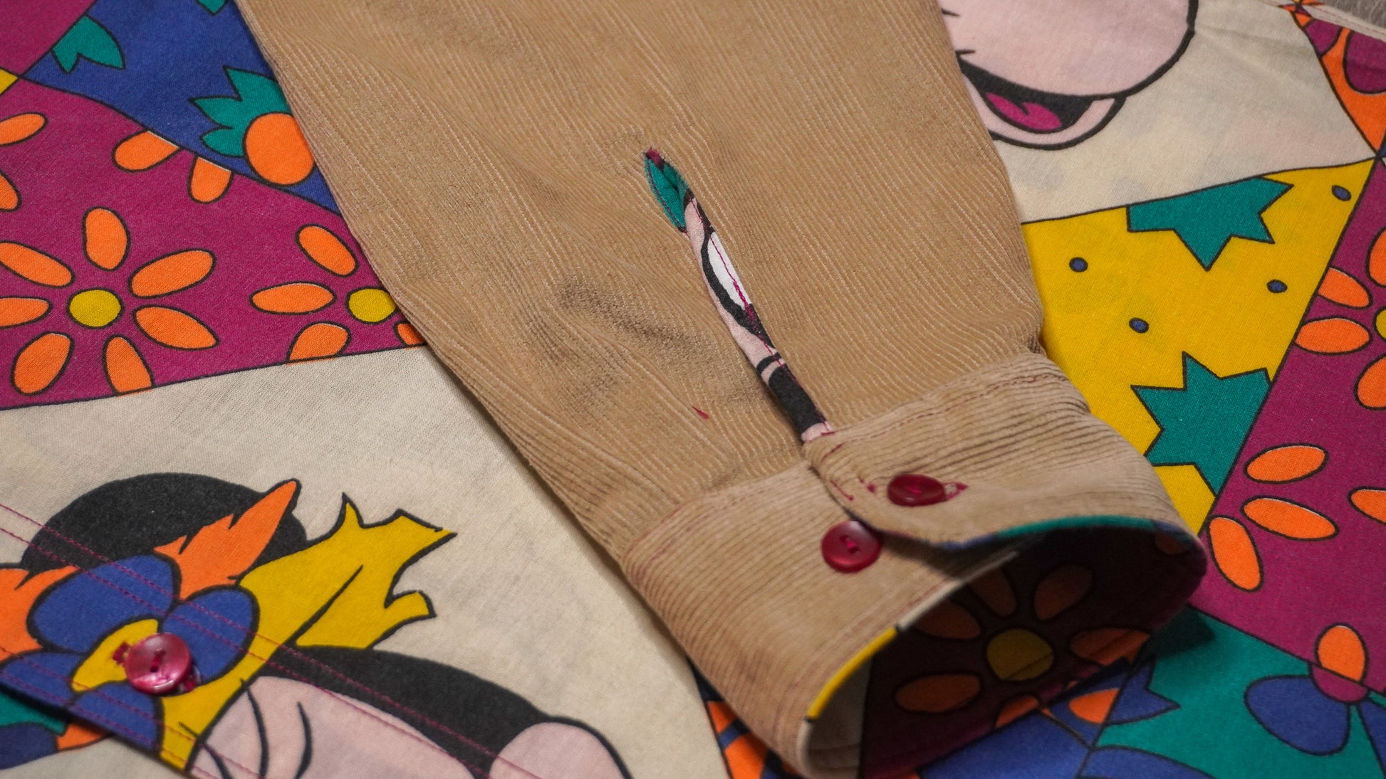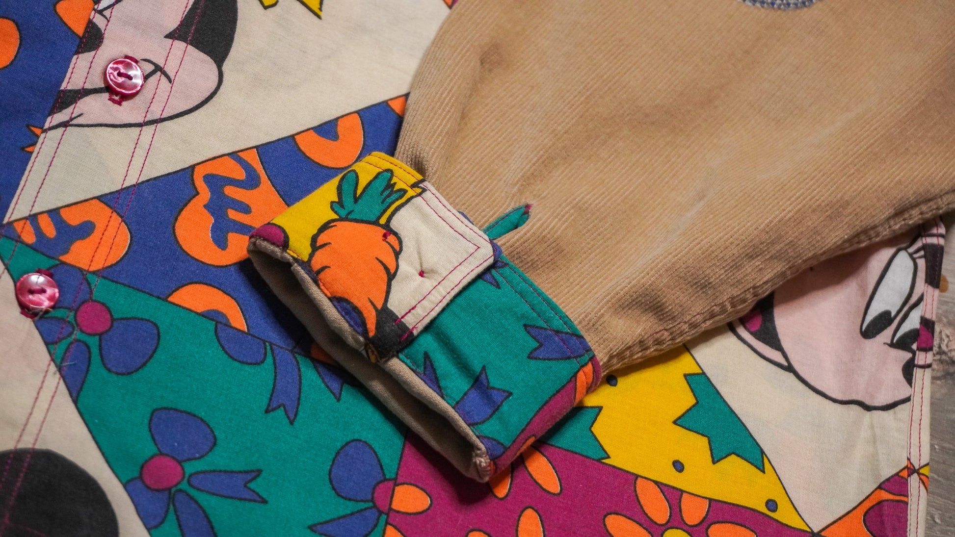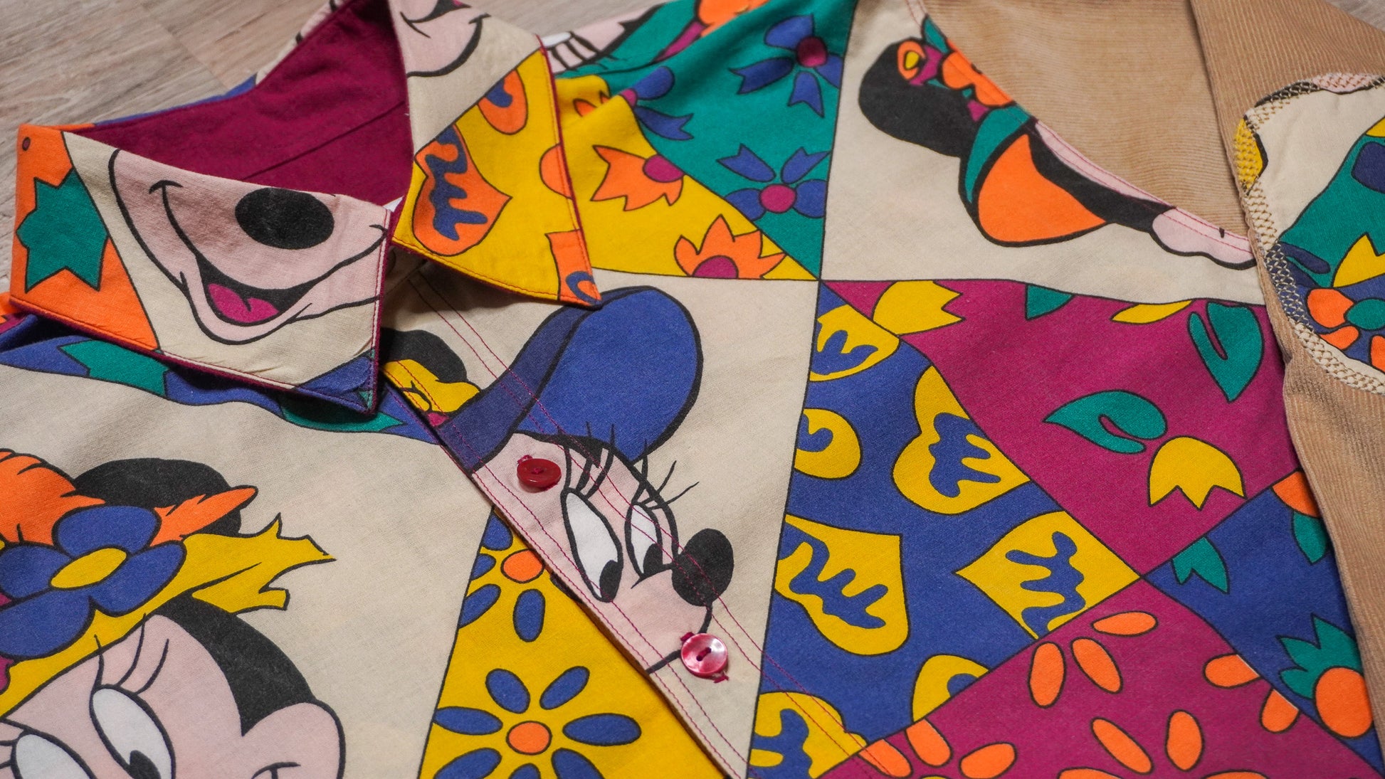 Chemise confectionnée à partir de draps vintages et d'autres matériaux de récupération soigneusement sélectionnés. Chaque chemisette est une pièce unique, créée avec passion et un savoir-faire artisanal.
