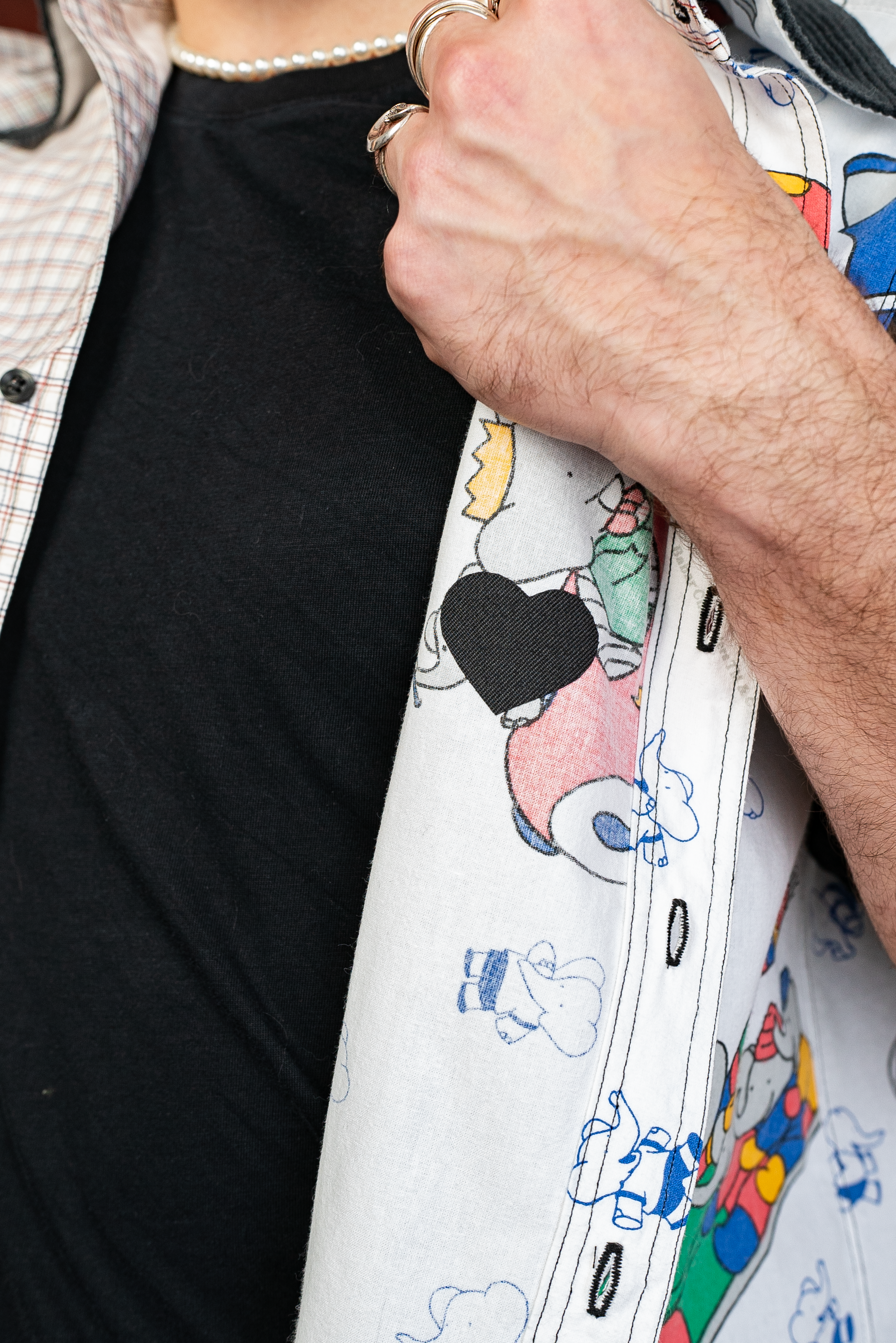 Du côté intérieur gauche de la chemise, vous pourrez retrouver un cœur en tissu thermocollant en référence au logo de la marque.